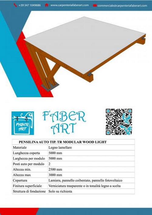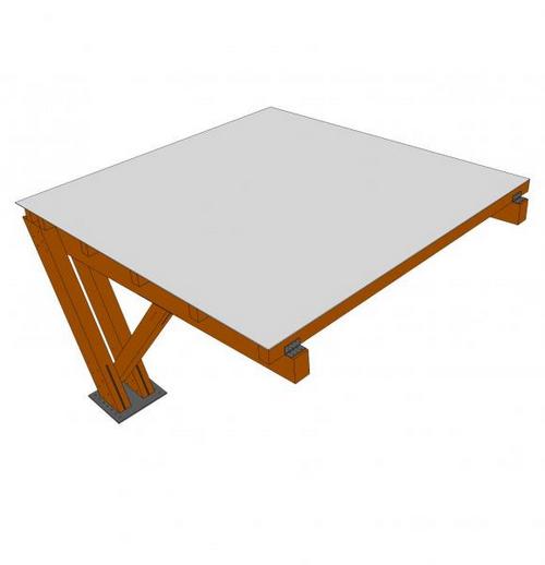 Pensilina a sbalzo analoga alla tipologia LIGHT. E' formata da montanti realizzati in elementi in legno lamellare accoppiati, all'estremità dei quali viene fissata, a mezzo di giunto bullonato, una mensola superiore in legno lamellare. Gli elementi sono opportunamente dimensionati e verificati in base ai carichi di natura ambientale (neve, vento) e sismica. All'estremità libera della mensola superiore è posto un tirante in tubo tondo, le cui estremità vengono fissate, mediante bulloni, alla mensola ed alla coppia di montanti.