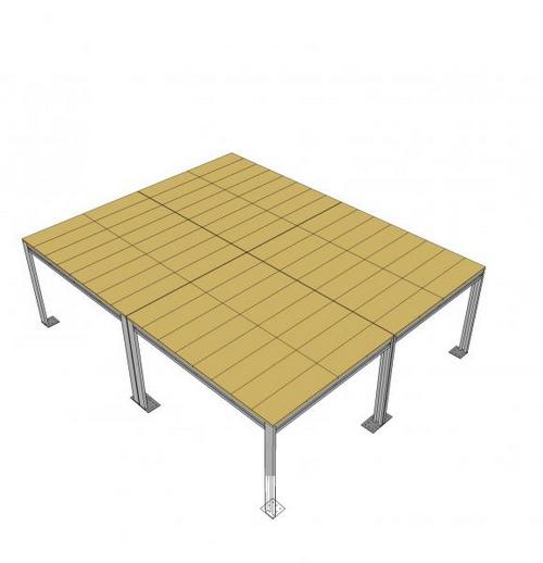 Usualmente la struttura di un soppalco si compone di una serie di pilastri fissati a terra, a sostegno di un impalcato superiore formato da travi principali e secondarie. Il piano di assito può essere di svariate tipologie, dalla lamiera con sovrastante getto in cls armato, alla doppia lamiera, al legno o altri materiali, in funzione dell'uso.