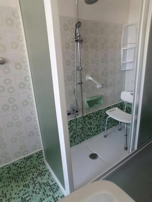 A seguito del lavoro di smantellamento, è stato applicato uno strato di mosaico sia come bordo che nella parte esterna al box a terra che ben si sposa con le piastrelle già esistenti nel bagno del cliente. Dopo solo 8 ore di lavoro, il bagno è stato consegnato al cliente pronto per essere utilizzato con i suoi accessori all’interno.
